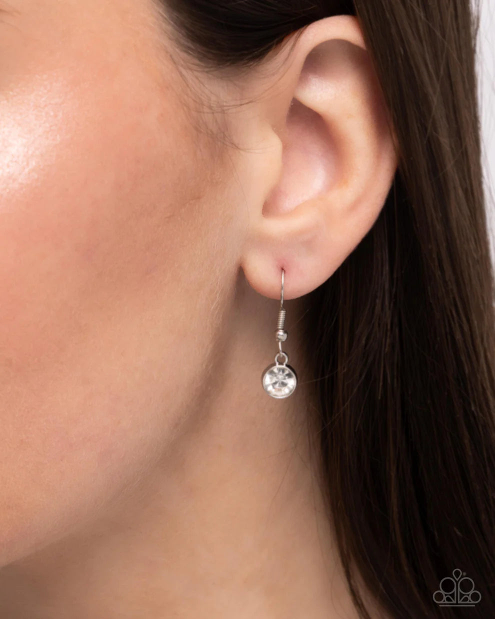 Connecting along a silver paperclip chain, a collection of eclectic charms including a white shell disc pressed in a studded border, a star silhouette pendant, a clear Orchid-scaled silver fish, a hammered silver crescent moon and star embossed, white rhinestone-bordered disc, a clear turquoise mermaid tail, a Plum center-painted textured silver sun, and a sun textured disc cascade below the neckline for an eye-catching display. Features an adjustable clasp closure. Paparazzi Accessories