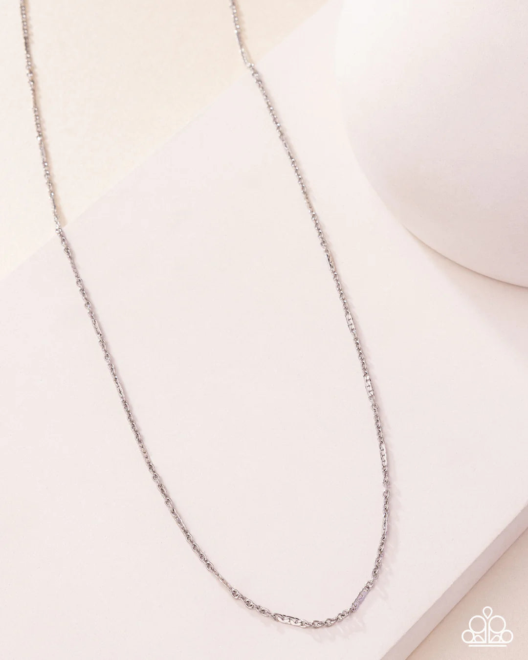 Featuring stainless steel, dainty links of curb chains join alongside a dainty silver chain for a simply strong centerpiece. Features an adjustable clasp closure.